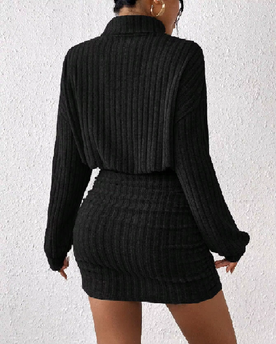 Crafted from a soft and warm knit fabric, this dress features a flattering high neckline that adds a touch of elegance and provides extra warmth. The standout lantern sleeves offer a trendy, voluminous look, adding dimension to your outfit.